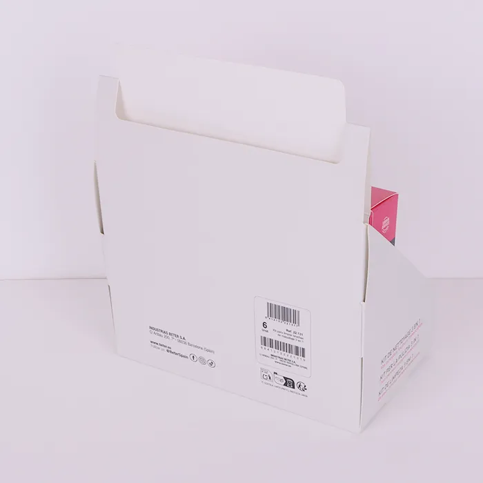 Wielofunkcyjna pokrywa tego opakowania z nadrukiem chroni produkty wewnętrzne przed kurzem, naciskiem i poślizgiem podczas transportu. W sklepach detalicznych pokrywę można oprzeć jako kartę ekspozycyjną lub panel nośny. Jego schodkowa struktura zwiększa widoczność i podkreśla polecane SKU.